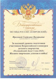 Благодарственное письмо МО МВД России "Ковровский"